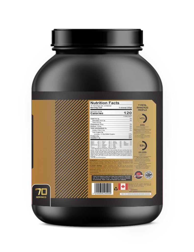 Proteína Isolatada gph nutrition prueba nuestra excelente proteina a base de suero de leche sin lactosa, sin carbohidratos adicionada con 2.5 grs creatina por porcion, mas vitamina minerales glutamina y aminaciodos esenciales delicioso sabor pruebala con leche o agua helada, dale más sabor añade fresa o platanos congelados realmente deliciosa.