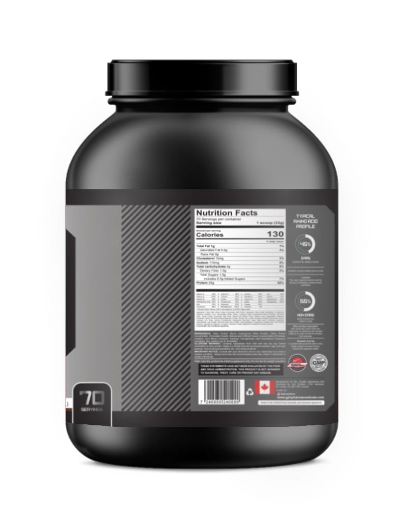 TRABAJAR EL MÚSCULO. Cada porción contiene 25 g de una mezcla de aislado de proteína de suero, concentrado de proteína de suero y 5 g de glutamina y aminoácidos de cadena ramificada (BCAA).